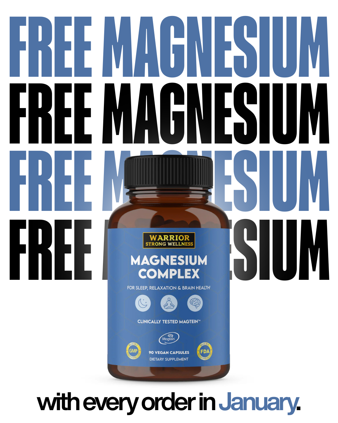 No code, no extra steps — just pure goodness. For a limited time, every order placed at Warrior Strong Wellness will automatically receive a FREE bottle of our bestselling Magnesium. You don’t need to add it to your cart; we’ll slip it into your package for you. It’s our way of saying thank you for supporting your wellness journey!