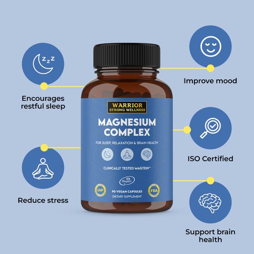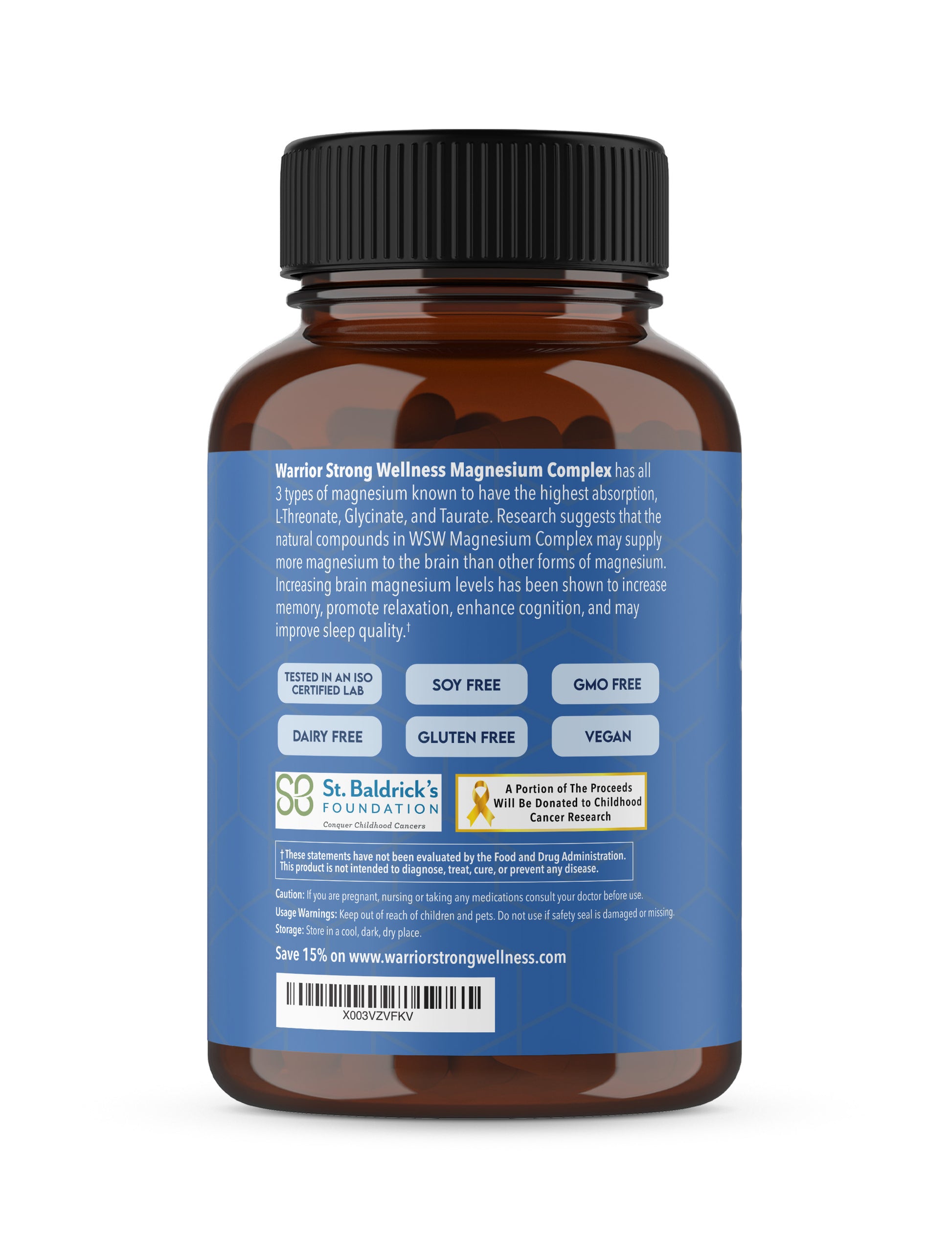 - MAGNESIUM COMPLEX SUPPLEMENT for WOMEN & MEN: Warrior Strong Wellness Triple Blend Magnesium Complex is the perfect natural brain food and sleep aid and for relaxation for men and women who lead busy, active and demanding lifestyles. For best results, take 3 vegan caps once a day, preferably late afternoon or evening with water.
