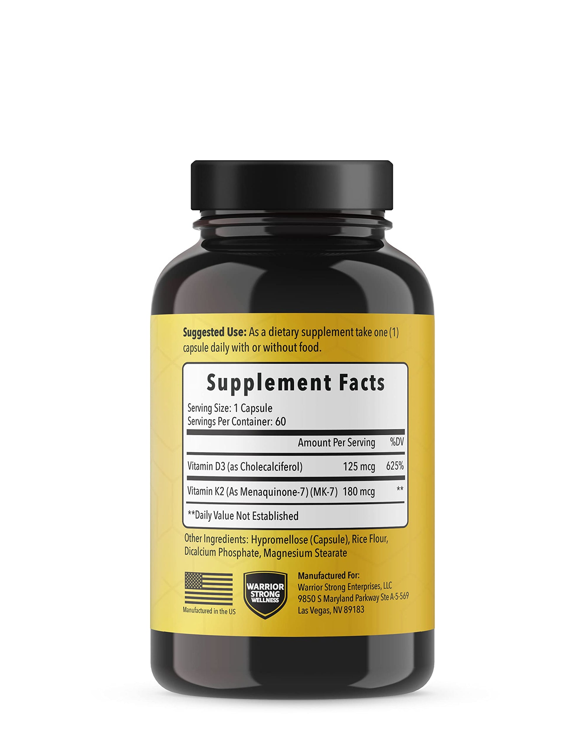 Vitamin D3 & K2 Dietary Supplement - Vitamin D3 5000 IU, Vitamin K2 Supplement - Immunity, Bone, & Heart Support Vitamins, Healthy Teeth, 60 Veggie Capsules by Warrior Strong Wellness